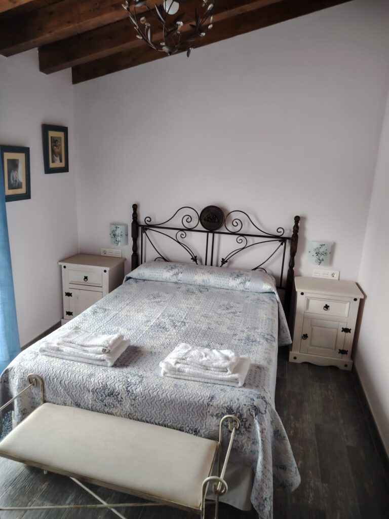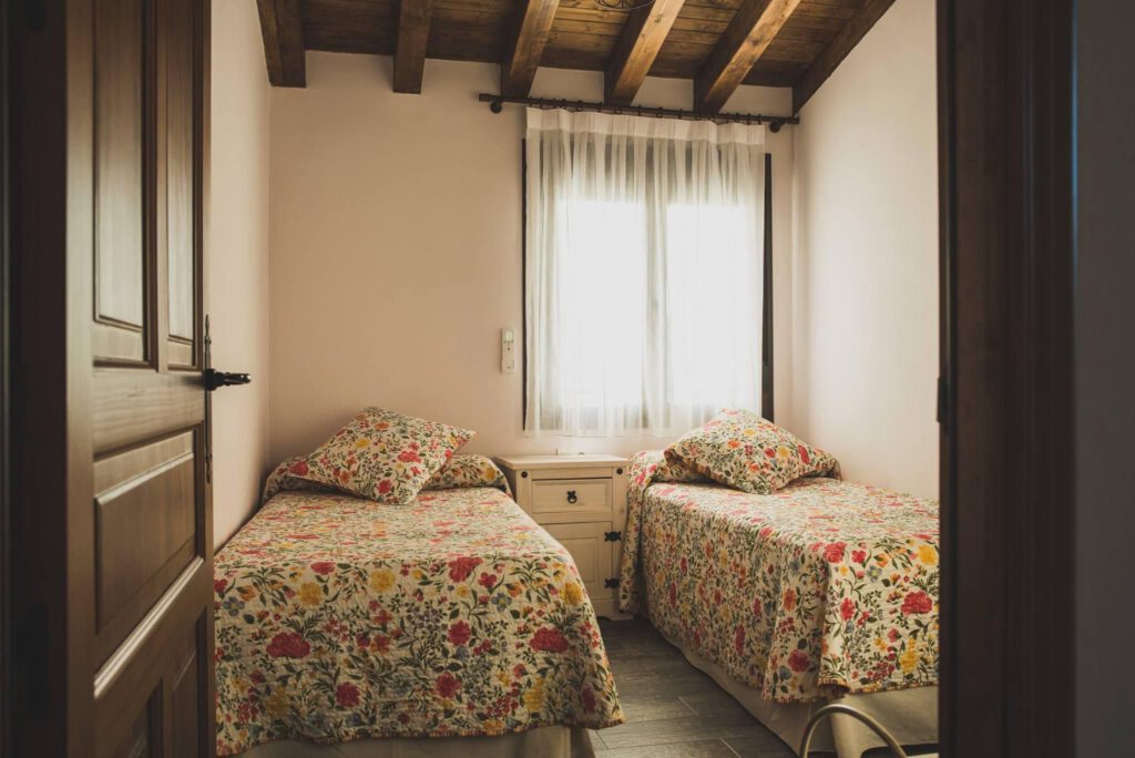 Apartamento Sierra: Ideal para una escapada en pareja o en familia, este apartamento rural ofrece un ambiente acogedor con vistas a la montaña. Dispone de una habitación doble, una de matrimonio y un salón con sofá cama. La chimenea añade un toque cálido y romántico en las noches frescas. Su terraza privada es perfecta para desayunar rodeado de naturaleza.